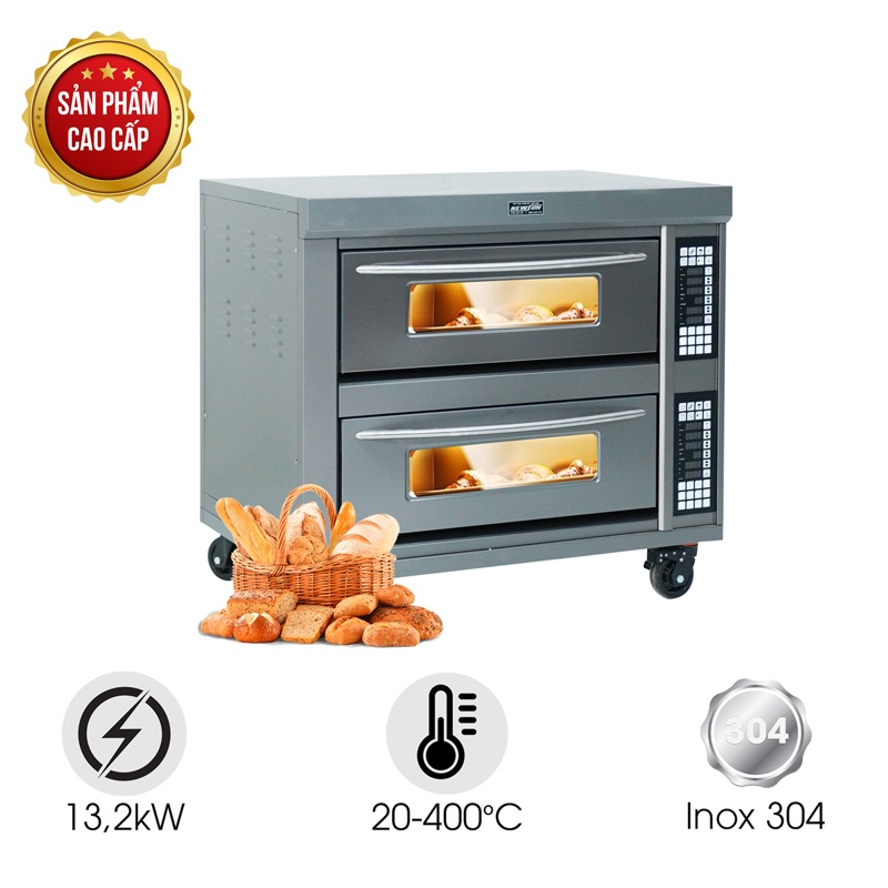 – Mỗi tầng đều có hệ thống điều khiển độc lập, cho phép người dùng tùy chỉnh nhiệt độ và thời gian riêng biệt phù hợp từng loại bánh hoặc giai đoạn nướng khác nhau. Nhờ cấu trúc linh hoạt này, người dùng có thể lựa chọn sử dụng 1 hoặc cả 2 tầng cùng lúc, giúp tiết kiệm điện năng và tối ưu vận hành khi nhu cầu nướng ít.